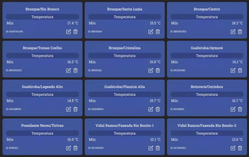 Podemos observar que toda a região do Vale do Itajaí-Mirim teve declínio das temperaturas. Vidal Ramos marcou 12ºC. Acompanhe: