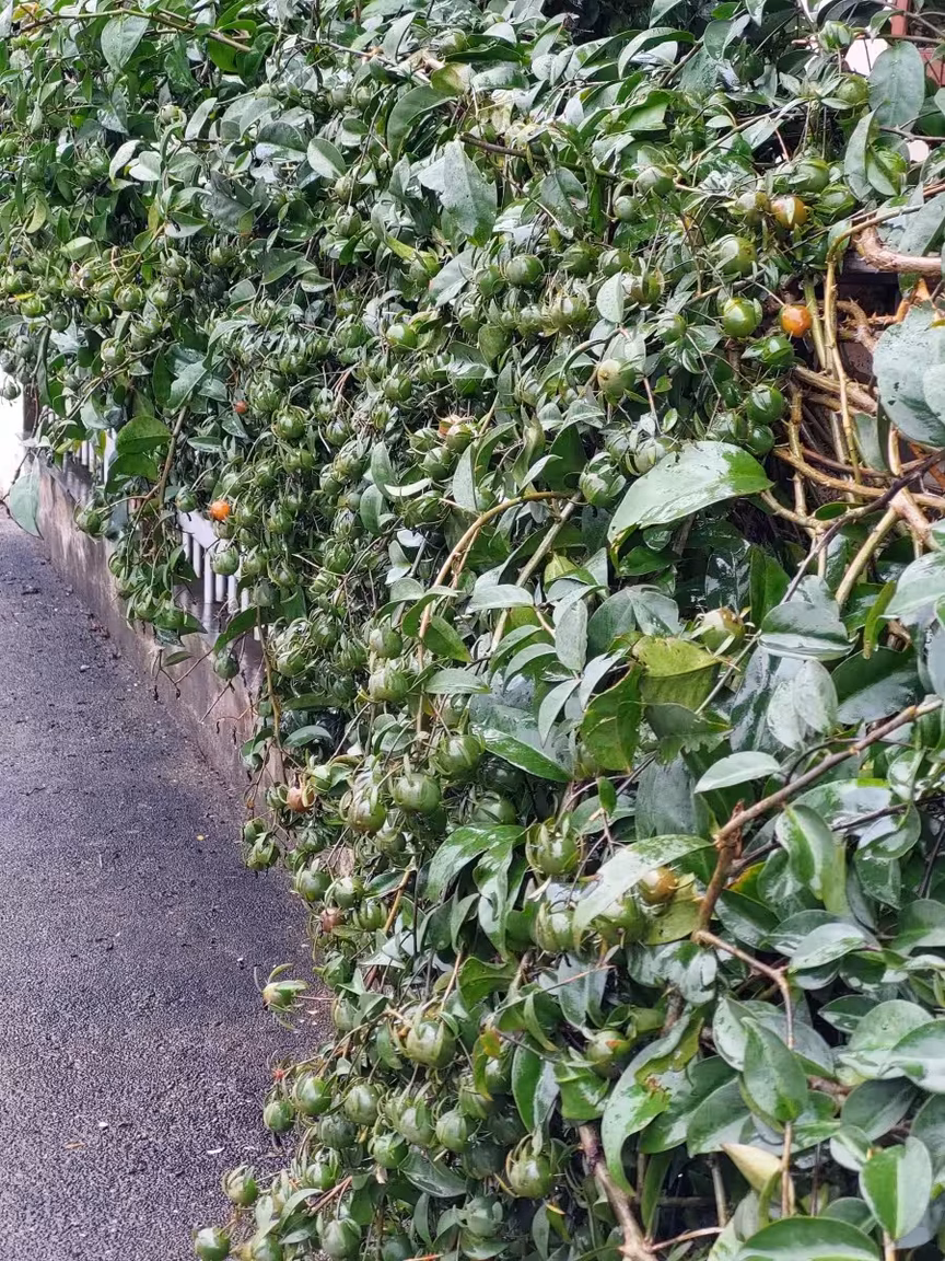 "Tenho um pé de ora-pro-nóbis aqui em casa. Um pé gigantesco que já nos forneceu sua flores no outono e agora está ofertando seus frutos no inverno. Ainda estão começando amarelar, mas alguns já estão no ponto para o consumo", explica Marilete.