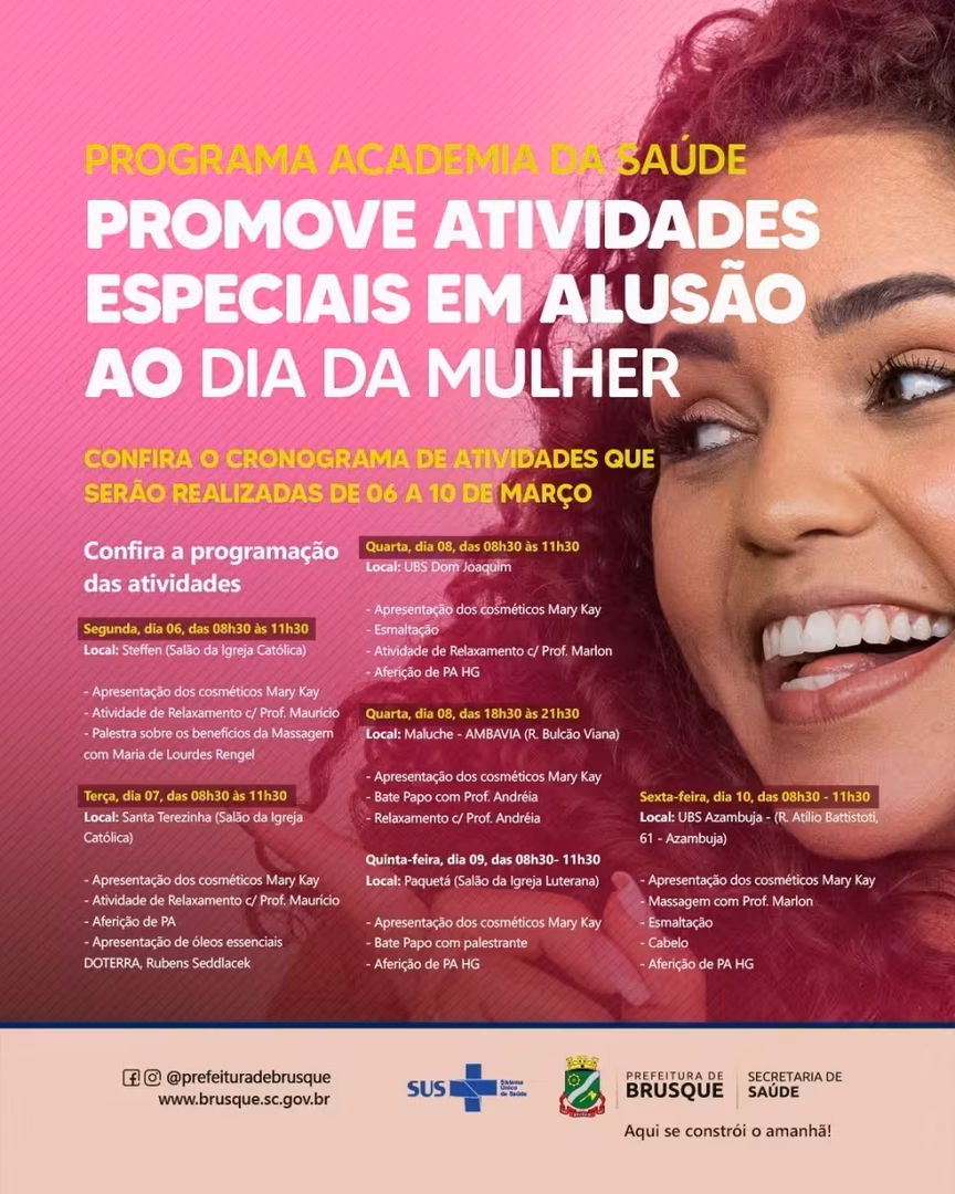 Confira as ações da Rede Municipal de Brusque em comemoração ao Dia da Mulher