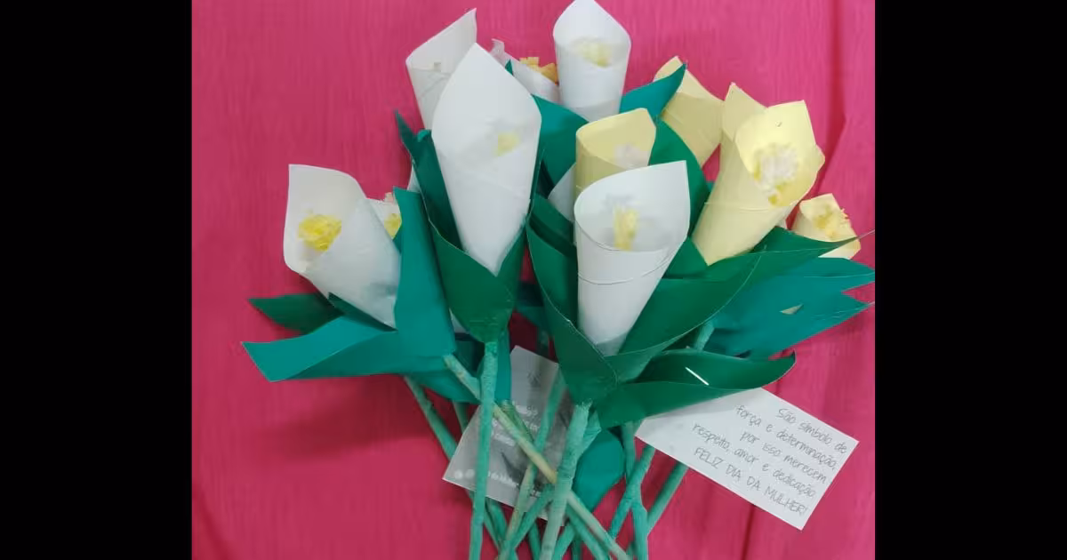No Caps Infantil, os adolescentes confeccionaram flores para entregar às mulheres, que são símbolo de força e de determinação, merecedoras de respeito e dedicação.