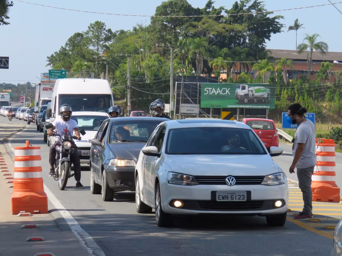 Assim que os servidores da Prefeitura de Brusque começaram a abordar os veículos, uma longa fila se formou na rodovia e o trânsito ficou bastante lento.