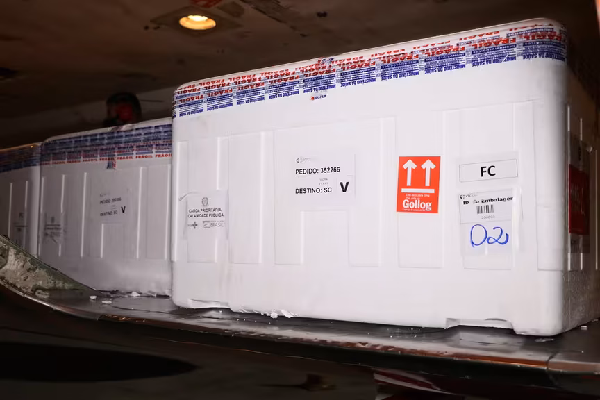 As doses da vacina do laboratório AstraZeneca/Fiocruz que chegaram a Santa Catarina na madrugada desta terça-feira, 18, já foram entregues para todas as 17 centrais regionais.