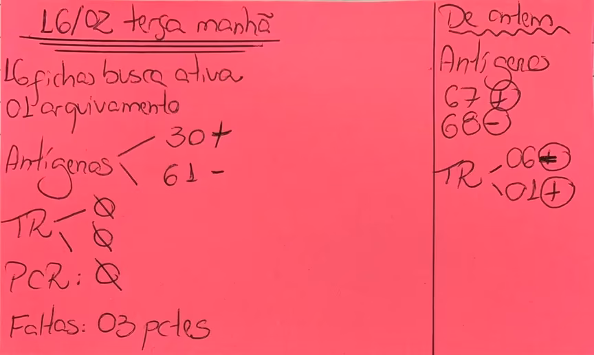 Entre as mensagens ainda foi compartilhada uma imagem com informações sobre a quantidade de testes na terça de manhã. De acordo com a anotação, 30 testaram positivo e 61 negativo.
