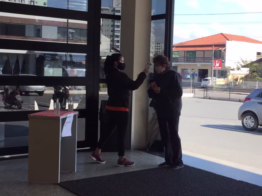 Os supermercados já estão realizando a medição da temperatura. Os funcionários estão proibindo pessoas que estão com sintomas de febre de entrar no local e os orientando a procurar o Centro de Triagem. Além disso, os estabelecimentos fecharam algumas para controlar quem entra e sai e tem avisos explicando a capacidade limite.