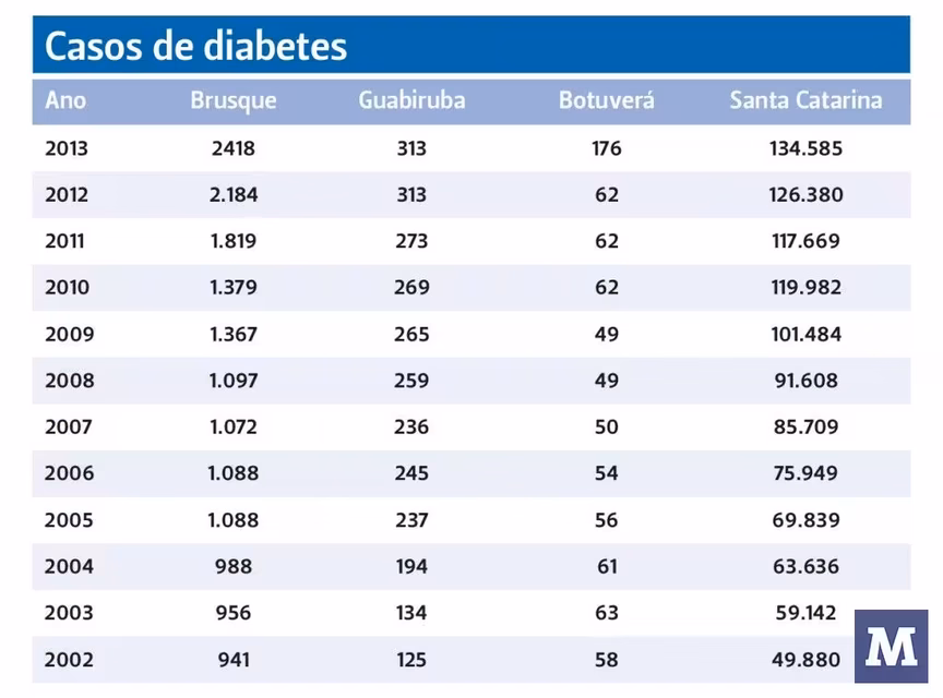 Brusque segue a tendência mundial quando o assunto é diabetes – doença crônica que quadriplicou desde 1980, segundo a Organização Mundial da Saúde (OMS). O número mais atualizado de diabéticos no município é de 2013: na época eram 2.418. O dado foi divulgado pelo Observatório Social de Brusque.