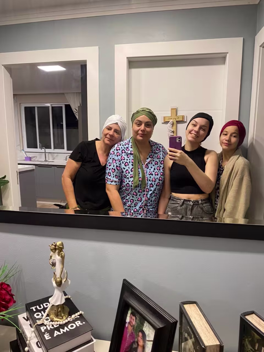 Apesar do medo e insegurança, Tânia diz que Fernanda lidou tranquilamente com a situação. “Após raspar, ela olhou no espelho e disse ‘até que não fiquei tão feia’. Ela nos convenceu a não raspar também”, continua.