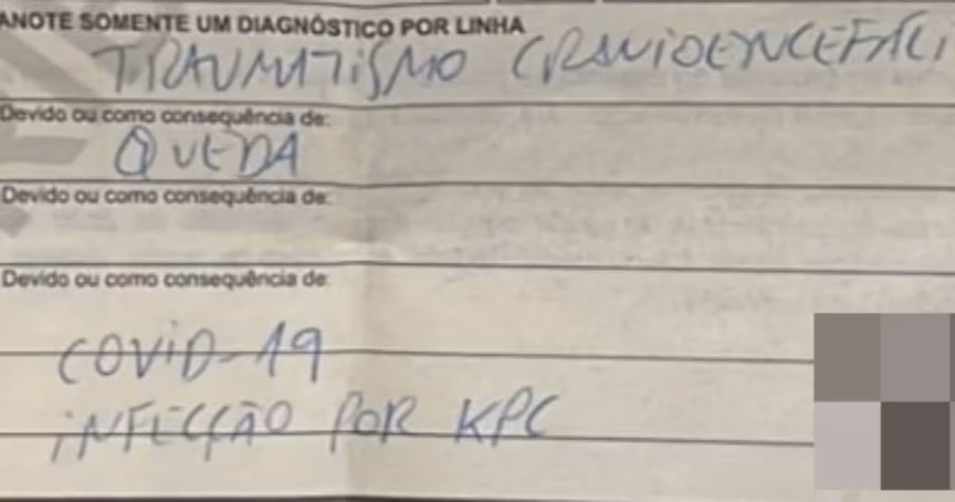 "Se ele teve Covid-19 ou não, eu não sei dizer. Mas tenho a declaração de morte dele, que diz que ele faleceu por causa de um traumatismo cranioencefálico. Ele morreu nos nossos braços. Se fosse Covid-19, ele não teria visitas. É preocupante, para nossa surpresa ele apareceu como óbito por Covid-19", complementa.