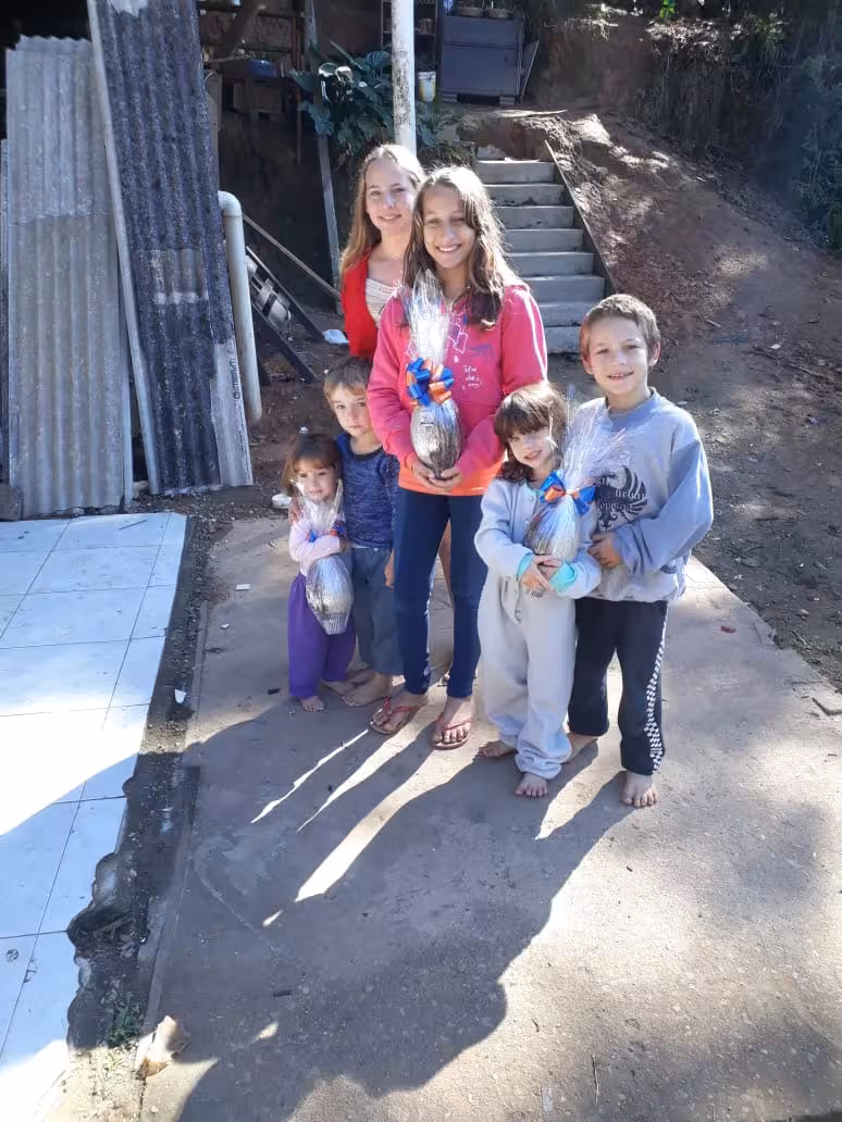 De acordo com a Luana, as famílias foram selecionadas pelas escolas dos bairros. "A gente ficou bem feliz com essa ação, pois sabemos o quanto uma criança espera pelo chocolate na Páscoa. Muitas dessas famílias, nessa atual situação, não conseguiriam comprar o chocolate, as prioridades são outras, os alimentos básicos. Com certeza colocamos o sorriso no rosto de muitos pequenininhos", comenta.