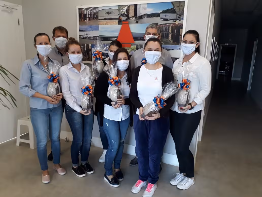Funcionários de indústria têxtil doam ovos de Páscoa para 39 famílias de Guabiruba