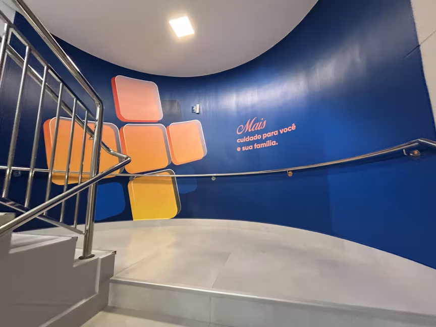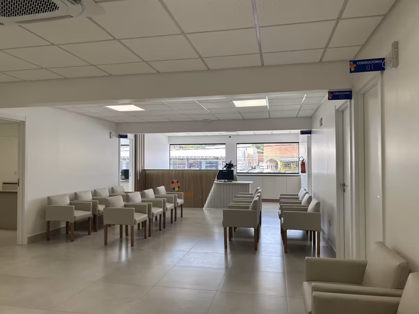 Com 650 m² de área construída, o ambiente conta com farmácia própria, consultórios médicos de diversas especialidades no primeiro pavimento, sala de vacinação e laboratório de análises clínicas no segundo andar. O local também dispõe de recepção, banheiros e estacionamento.