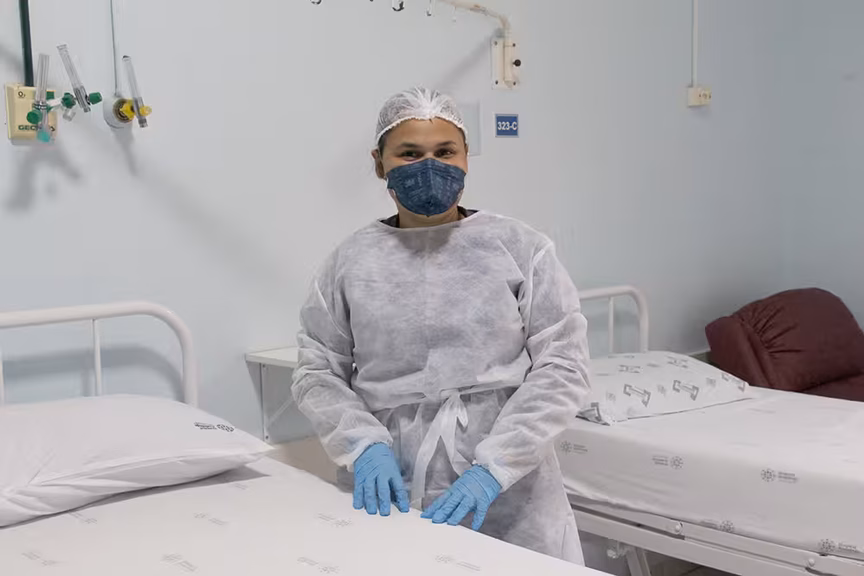“Foi algo novo, um grande aprendizado e uma experiência enriquecedora, em especial no contato com o próximo. Fui muito bem acolhida, pude esclarecer muitas dúvidas e contei com pessoas dispostas a me ensinar também. Fiquei apaixonada pelo hospital e pela acolhida que tive aqui e, quando soube da vaga para ficar, não pensei duas vezes”, comentou ela que inicialmente trabalhou na UTI Covid e agora atua também na ala de isolamento do Coronavírus do hospital.