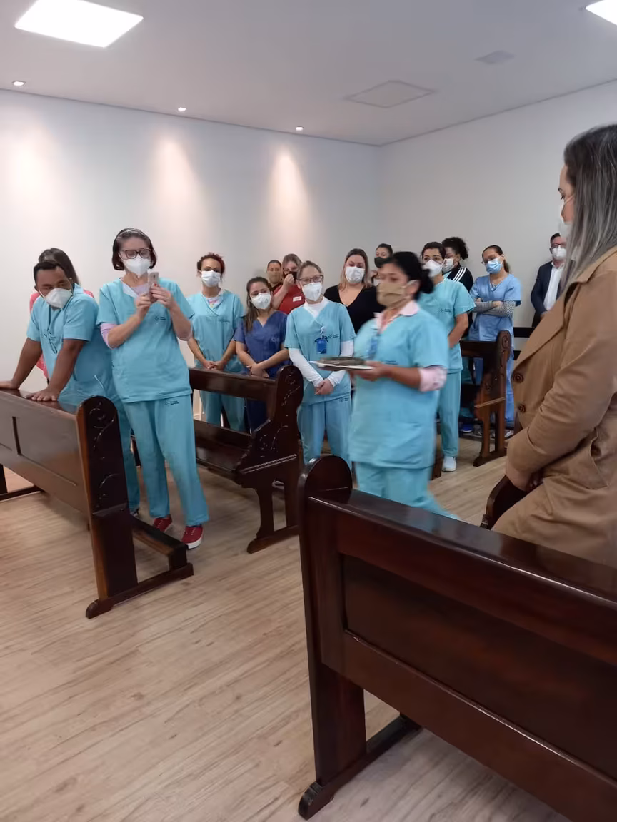 “O trabalho de cada um, que faz parte desta grande equipe, é muito importante. Por isso eu quero louvar e agradecer a Deus por esse grupo de pessoas, que aqui se ocupa em favor dos nossos doentes. Vamos rezar para que jamais faltem pessoas dedicadas e disponíveis como vocês, na vida daqueles que estão desprovidos daquilo que lhes é mais precioso, a saúde”, destaca Pe. Nélio.