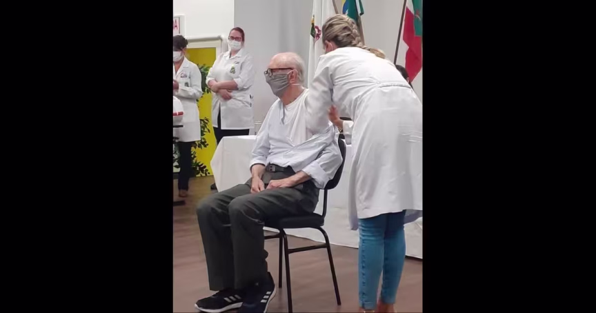 No meio da tarde desta terça-feira, 19, o recordista do Guinness World Records com 83 anos de atividade profissional, Walter Orthmann, foi o primeiro vacinado contra a Covid-19 em Brusque.
