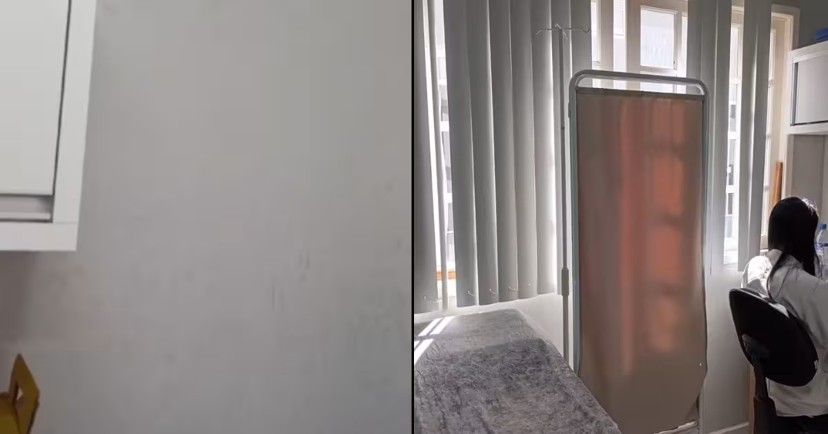 Vídeos enviados à reportagem na quinta-feira, 27, mostram mofo nas paredes e um biombo que, segundo os relatos, é usado para tapar uma das janelas, que permite a visibilidade de uma creche ao lado da unidade.