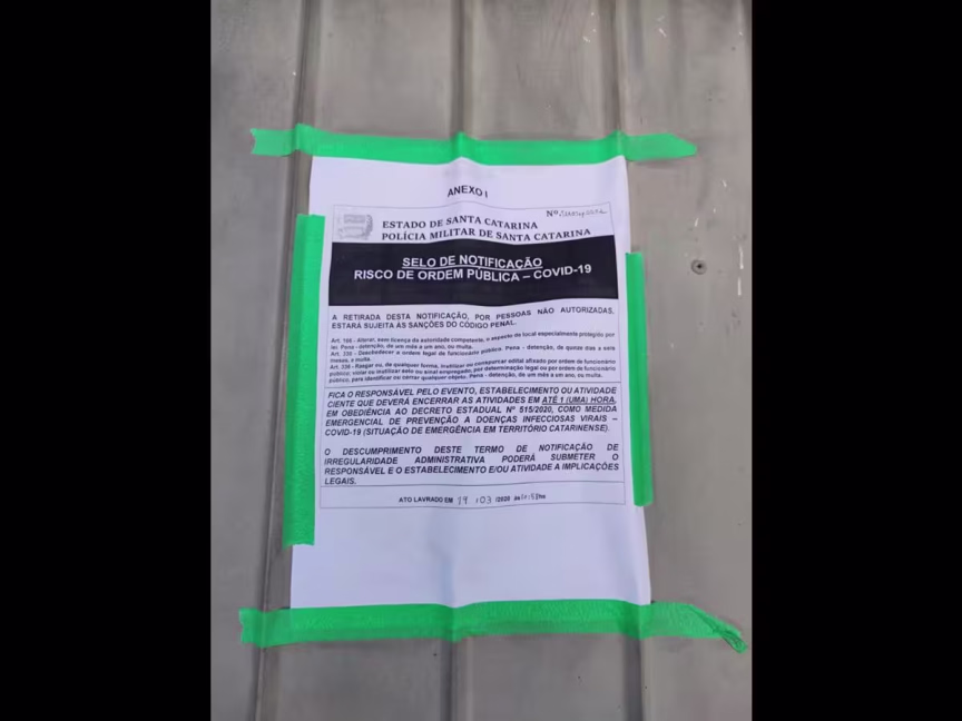 Coronavírus: PM de Brusque notifica estabelecimentos que descumpriram decreto estadual 19/03/2020 • Redação O Município