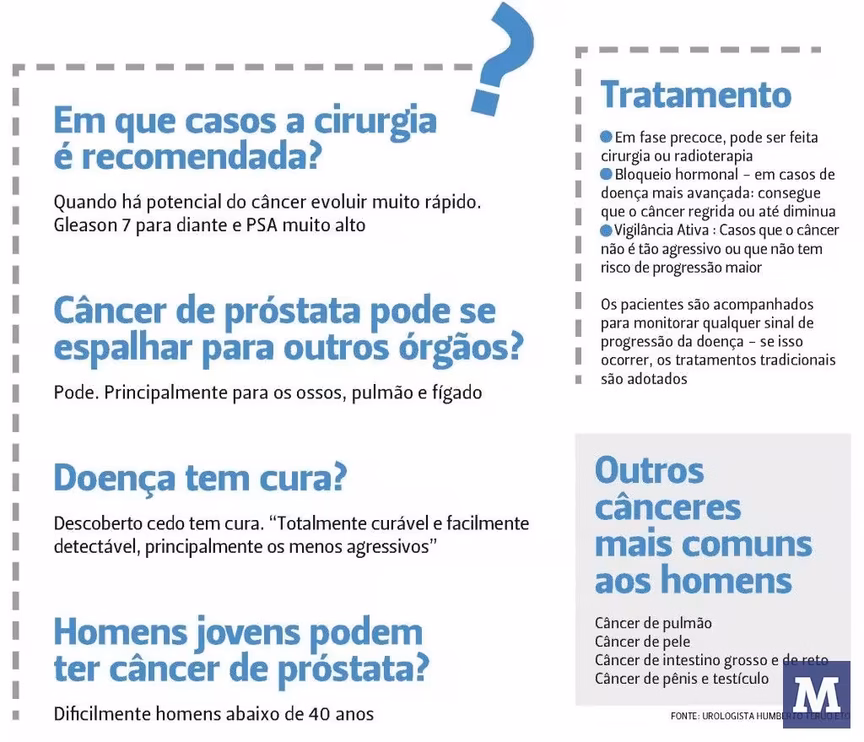 Com mais de 13 mil mortes anuais – uma a cada 40 minutos, o Instituto Nacional do Câncer (Inca) calcula que mais de 61 mil novos casos devem ser registrados no Brasil este ano, ou seja, a um risco estimado de 61,82 casos novos a cada 100 mil homens. No entanto, se diagnosticado no início, a chance de cura é grande – cerca de 90%, já se detectado em estágio avançado, chances de cura são de 10% a 20%.
