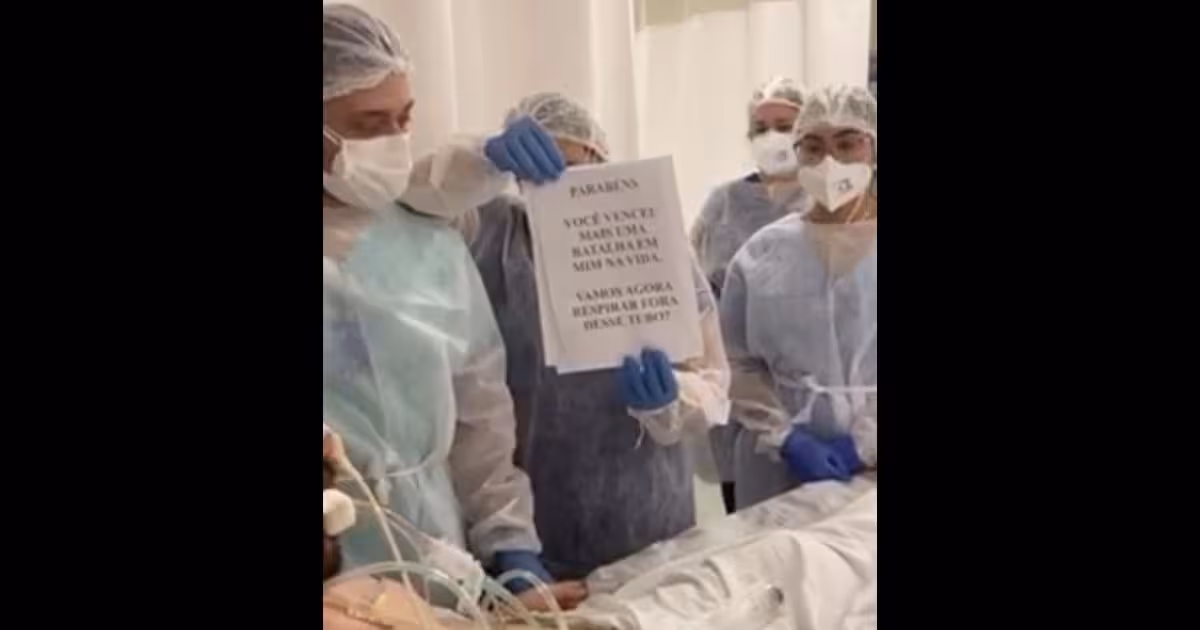 Profissionais do hospital prepararam uma mensagem especial para comunicar a alta