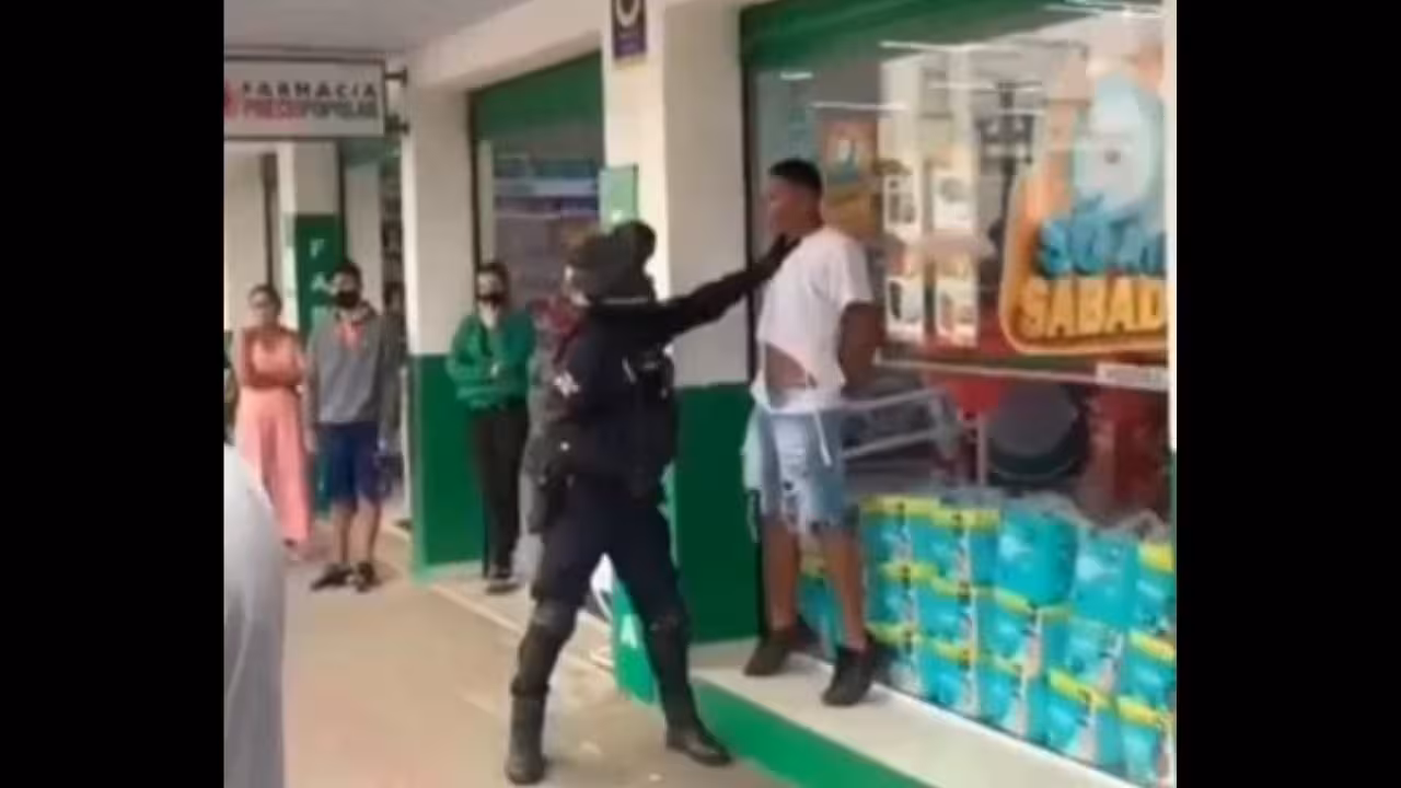 Uma abordagem da Guarda Municipal de Itajaí ganhou destaque nesta segunda-feira, 13, após o deputado estadual Bruno Souza publicá-la nas redes sociais. Nela, um jovem de 17 anos, que estava vendendo alfajor na rua Hercílio Luz, em Itajaí, foi abordado pela Guarda Municipal para fiscalização dos produtos. A publicação mostra o momento da abordagem da guarnição e, segundo pessoas que estavam no local, o homem teve seu isopor com os doces arrancado de seus braços, quebrando e foi imobilizado por dois guardas. No início da filmagem, é possível ver o jovem sendo segurado pelo pescoço contra a vitrine de um comércio.