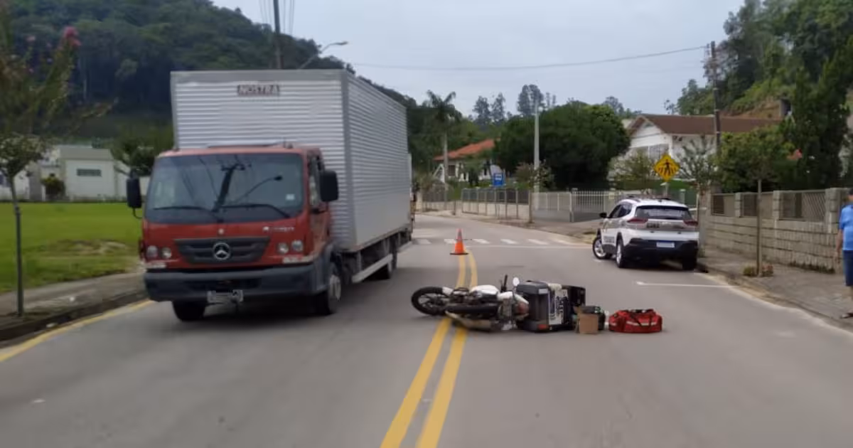 Acidente entre moto e carro deixa homem ferido no São Pedro, em Guabiruba