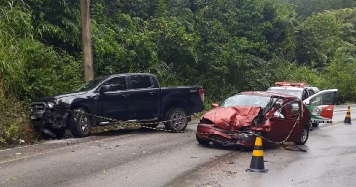 Segundo o Corpo de Bombeiros, o acidente envolveu um carro e uma caminhonete, que colidiram frontalmente.