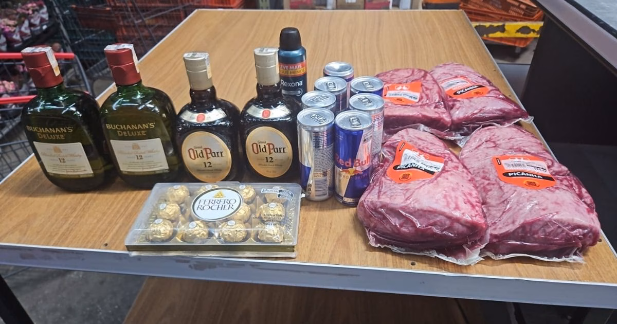 Um funcionário do local relatou que o jovem já havia furtado o estabelecimento em outras duas ocasiões, mas não havia sido possível abordá-lo. Desta vez, o suspeito entrou no mercado, colocou sete energéticos, quatro garrafas de uísque, um chocolate, um desodorante e quatro peças de picanha em uma mochila preta e saiu do local.