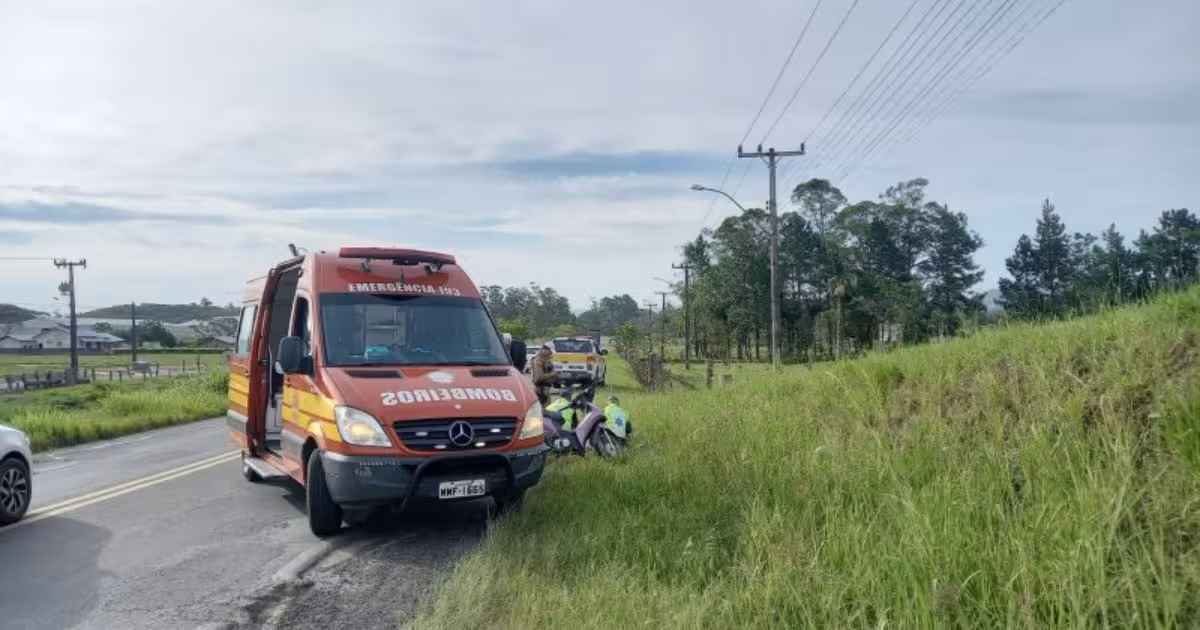 O acidente aconteceu na rodovia Genésio Mazon (SC-445). A mulher conduzia uma Honda Biz, com placas de Morro da Fumaça.
