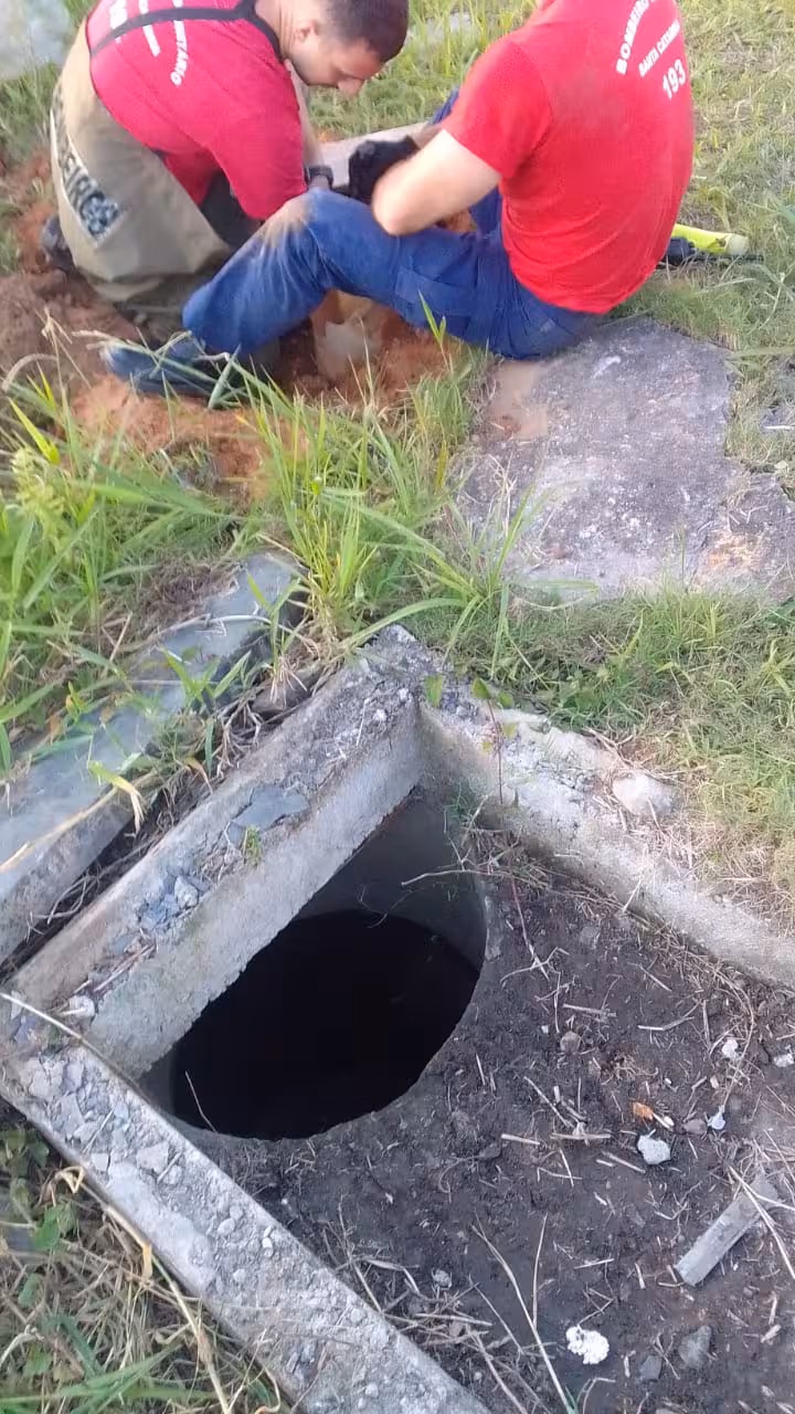 O Corpo de Bombeiros de Itajaí foi acionado para atender uma ocorrência na qual supostamente um cachorro teria caído em um duto pluvial, no bairro Santa Regina, em Itajaí. Quando os bombeiros chegaram ao local, por volta das 18h10, constataram que realmente havia um filhote de cachorro preso.