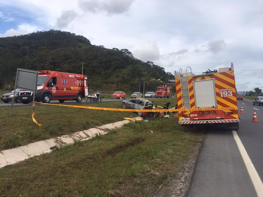 Após colisão, veículo capota e duas pessoas ficam feridas na BR-470, em Gaspar