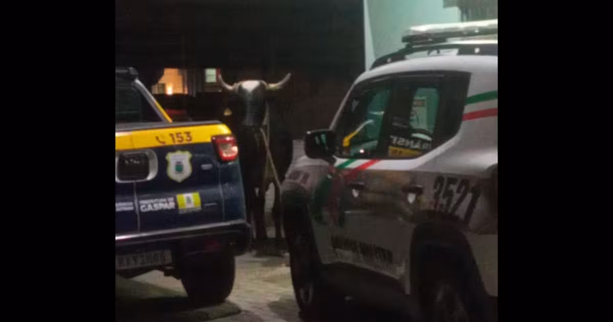 Um boi fugiu na noite deste domingo, 2, em Gaspar e foi localizado no Centro do município. O resgate do animal mobilizou a Polícia Militar, Corpo de Bombeiros e a Superintendência de Trânsito (Ditran) – órgão de trânsito de Gaspar.