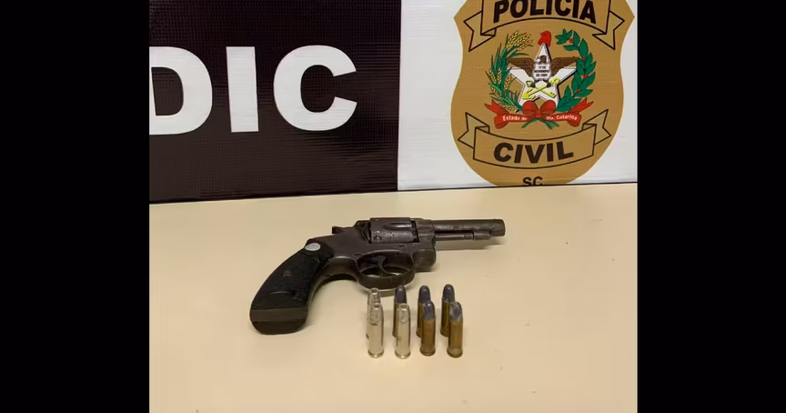 Durante o cumprimento do mandado, os policiais civis localizaram na residência um revólver calibre e oito munições calibre. Diante disso, o homem foi preso em flagrante e conduzido até DIC de Brusque para os procedimentos cabíveis.