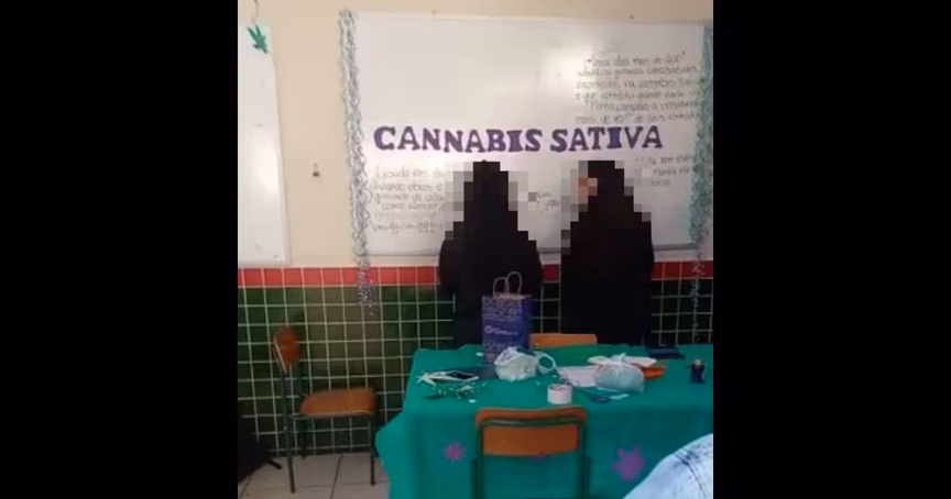 No vídeo, o homem aponta a câmera para um cartaz colado no muro, escrito “como a maconha salvou meu pai”. Além disso, mostrou os estudantes que preparavam a apresentação e reforçou que, segundo ele, se tratava de apologia ao crime.