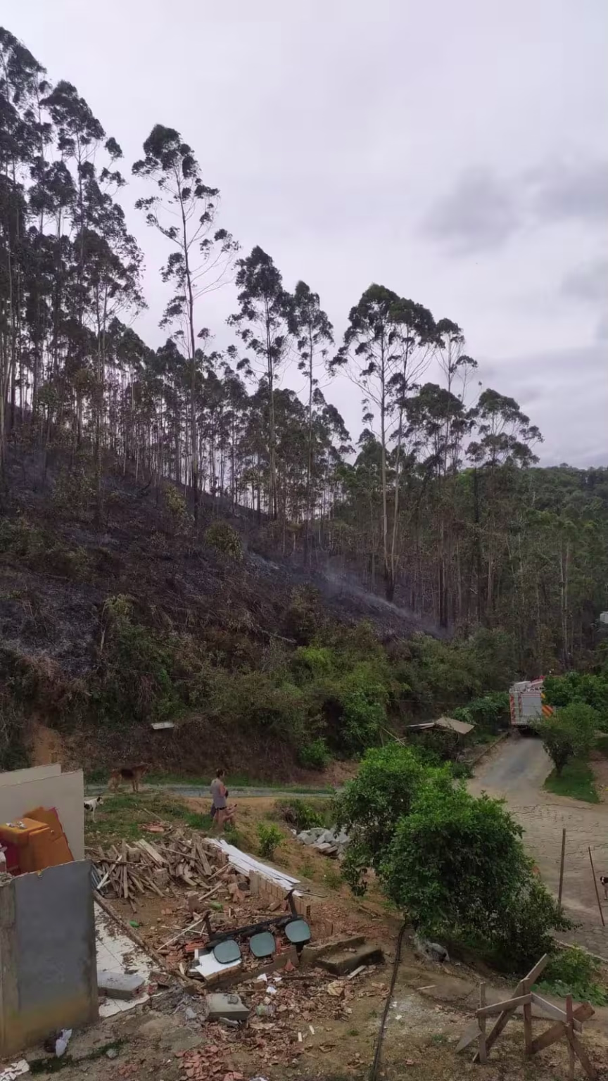 Área de mata é atingida por incêndio no bairro Souza Cruz, em Brusque