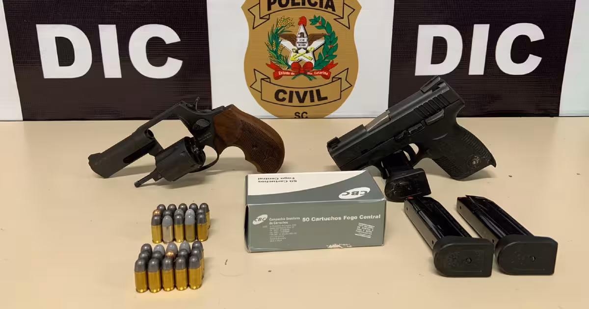 A apreensão ocorreu após colaboração anônima. Um revólver foi apreendido no Centro de Brusque e uma pistola no Bairro Planalto, além de 103 munições de calibre .380 ACP e .38 SPL.