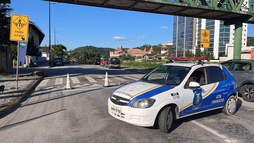 Uma árvore caiu na avenida Beira Rio, no Centro de Brusque, e interditou um trecho da via na tarde desta sexta-feira, 21. A Guarda de Trânsito de Brusque (GTB) atua no local.