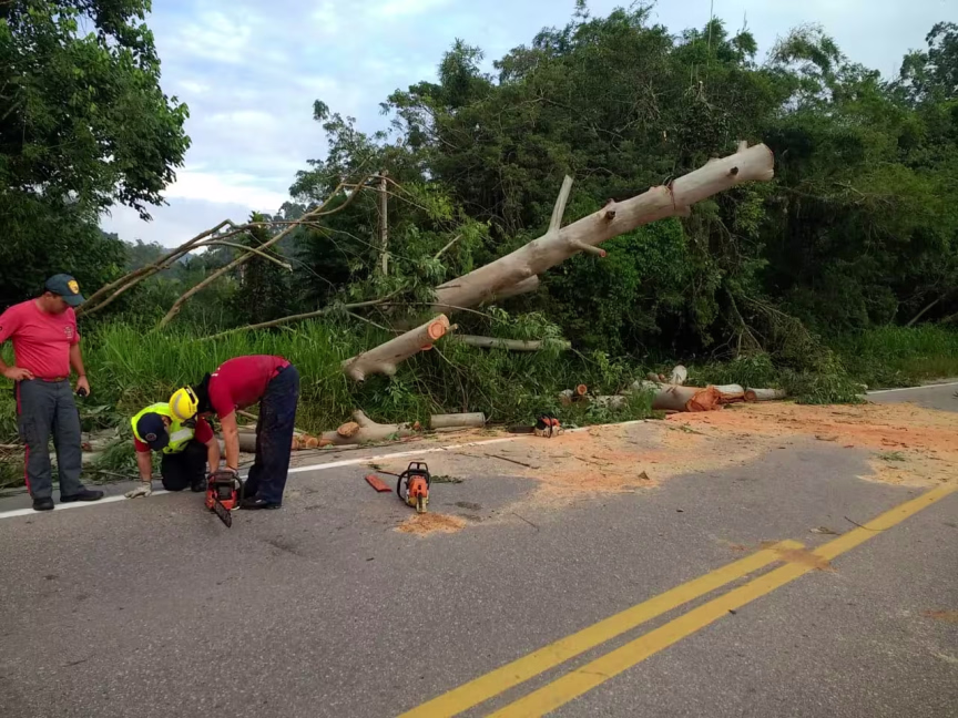 Na madrugada desta quarta-feira, 6, por volta das 4h30, o Corpo de Bombeiros foi até a rodovia Ivo Silveira, no bairro Bateas, em Brusque, para atender uma ocorrência de queda de árvore.