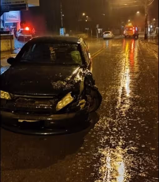 De acordo com o Corpo de Bombeiros, após a batida frontal entre a motocicleta e o carro, o condutor do veículo deixou o local. O carro é do Chevrolet Vectra de cor azul, com placas de Guabiruba.