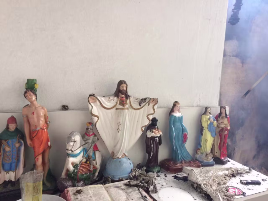 Segundo o Corpo de Bombeiros, em meio aos destroços foi encontrada uma Bíblia Sagrada intacta. Além dela, também haviam imagens de santos sem qualquer dano. Os itens pertenciam a uma família.