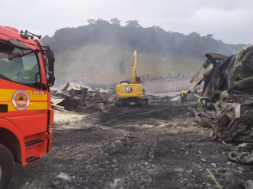 No fim da tarde desta sexta-feira, 3, o Corpo de Bombeiros Militar oficialmente encerrou o combate ao incêndio de grandes proporções que atingiu o galpão da empresa Irmãos Fischer em Brusque.
