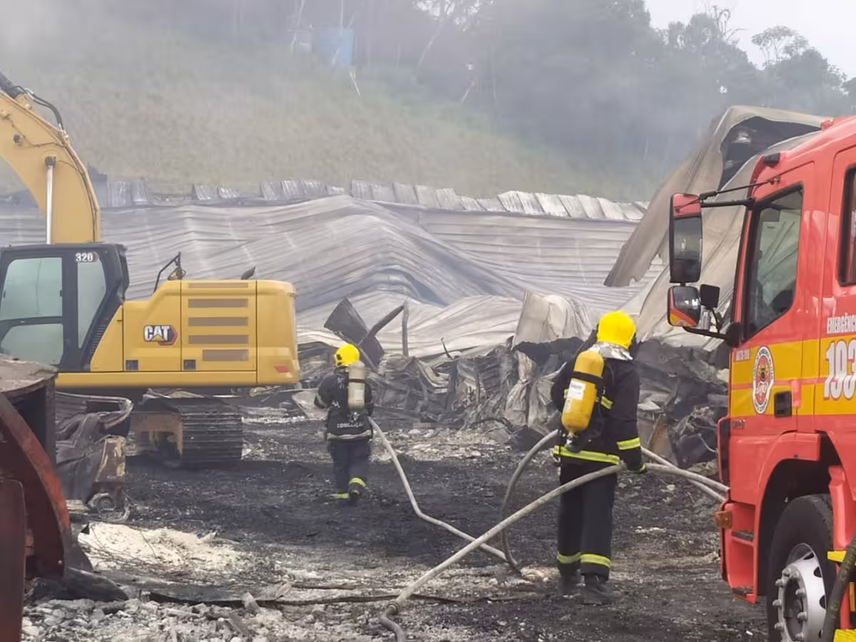 Bombeiros encerram combate ao incêndio em galpão da Irmãos Fischer