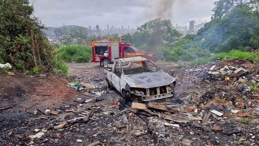 O Corpo de Bombeiros foi acionado para um incêndio em uma caminhonete em uma área de mata, em Camboriú, na tarde da quarta-feira, 20. Há suspeita de que o veículo havia sido furtado.