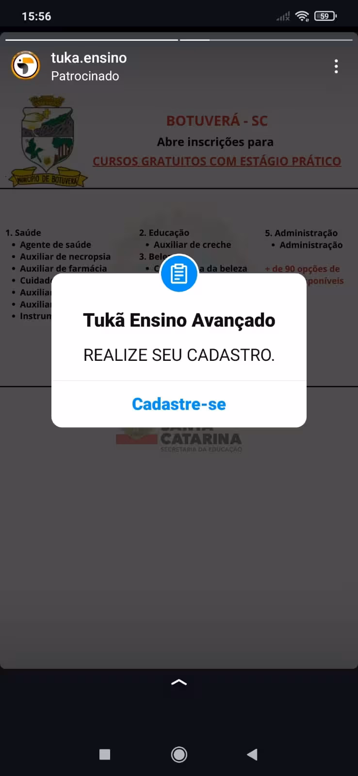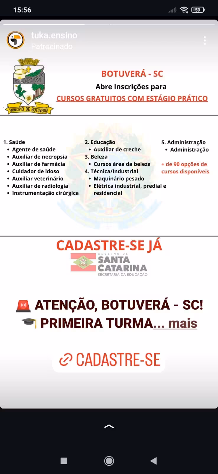 Brasão de Botuverá é usado de forma indevida em anúncio de supostos cursos