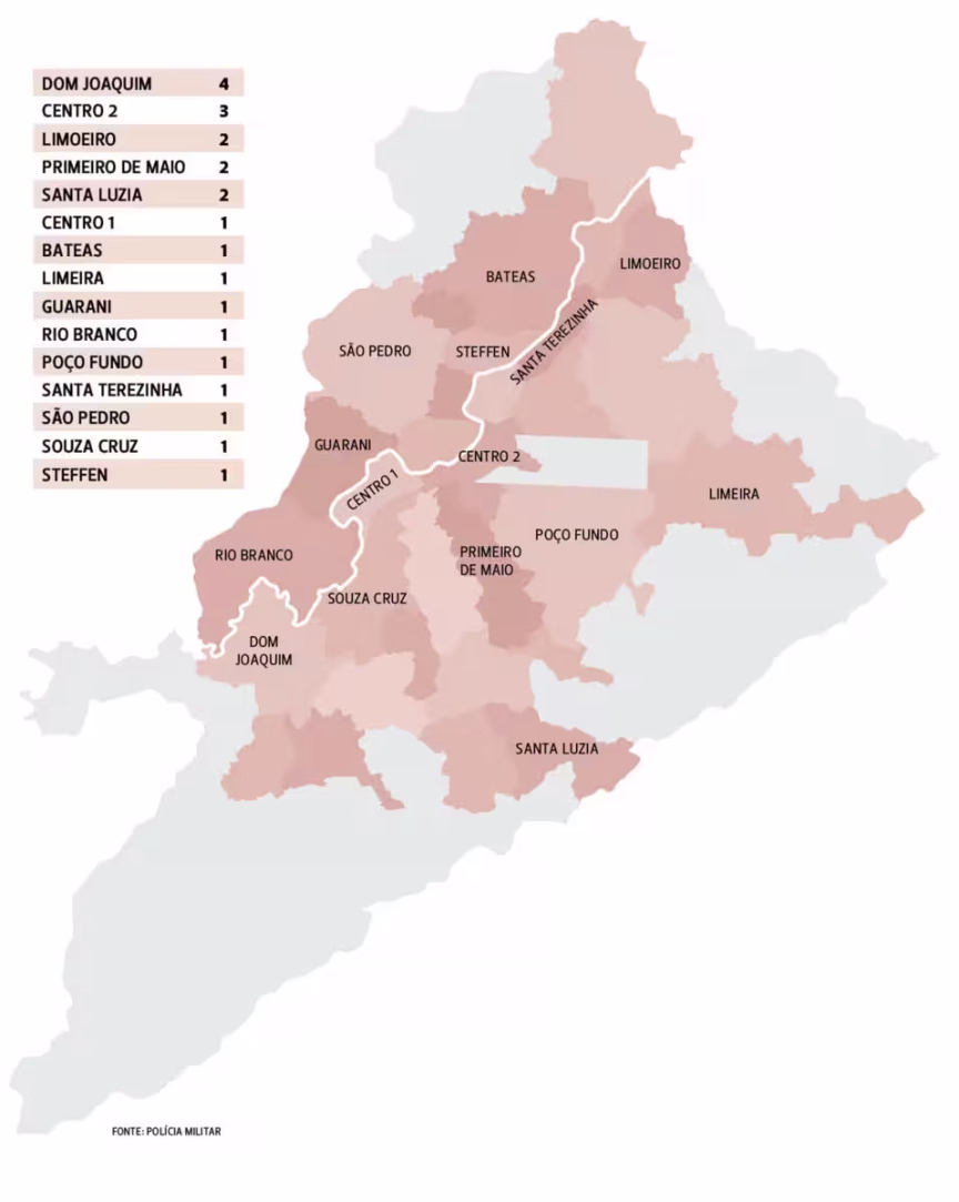 As 23 mortes superaram as 22 registradas em 2014, e se tornaram um recorde negativo dos últimos cinco anos. O ano de 2013 teve apenas 15 óbitos, e permanece um recorde positivo dos últimos dez anos. Foram 18 mortes em 2015 e 20 em 2016. Veja detalhes no mapa abaixo.
