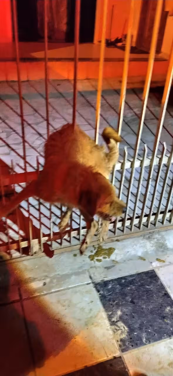 Um cachorro ficou preso no portão de uma casa em Navegantes e precisou ser resgatado pelos bombeiros. O caso foi registrado na noite deste sábado, 7, por volta das 22h45, no bairro São Domingos.