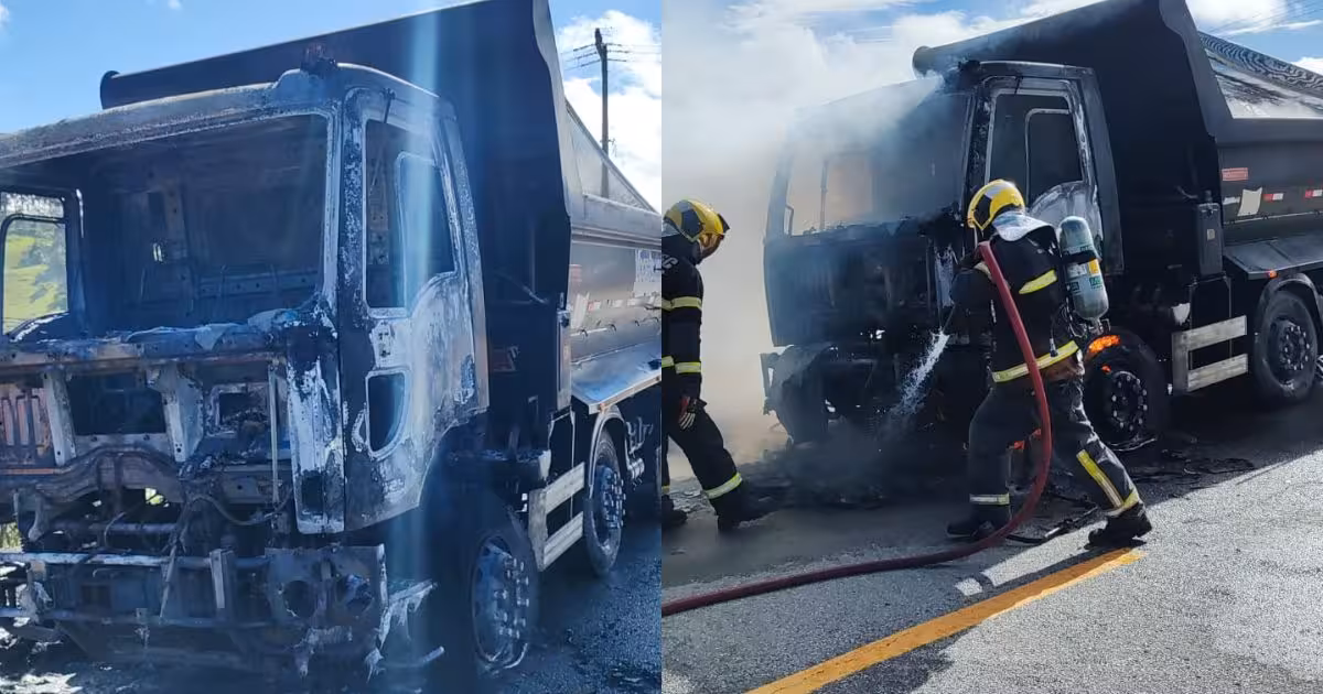 Segundo relatos do homem, ele estava em deslocamento sentido Litoral-Serra quando iniciou o fogo na parte de trás da cabine de forma repentina e acelerada.