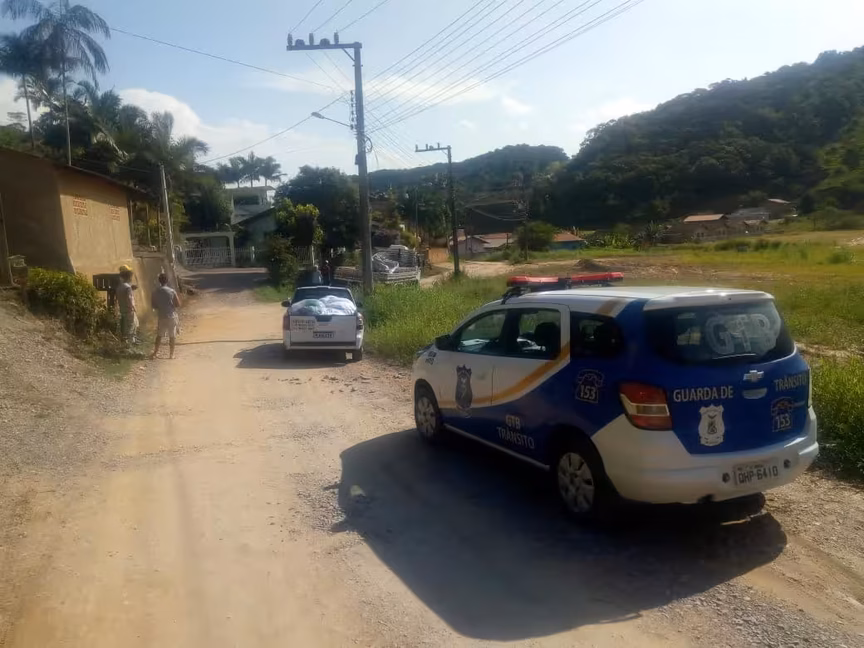 A Guarda de Trânsito de Brusque foi acionada após ser informada de que parte da carga acabou caindo sobre outro veículo que estava estacionado na via.