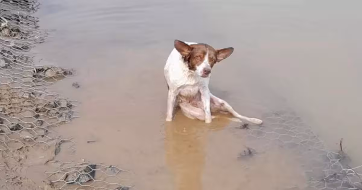 Cão ferido é resgatado às margens de rio em Blumenau
