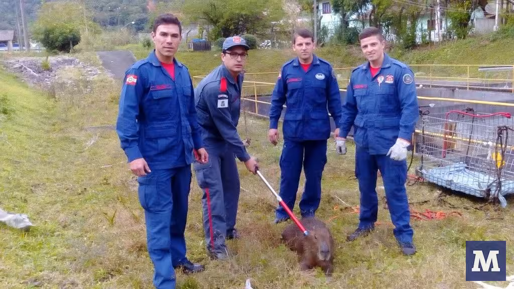 O Corpo de Bombeiros atendeu a uma ocorrência um pouco diferente, na manhã desta quinta-feira, 28. Os socorristas foram acionados para retirar uma capivara que havia caído dentro de um reservatório de tratamento de rejeito químicos, na empresa Buetnner, no bairro Bateas.