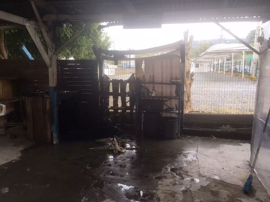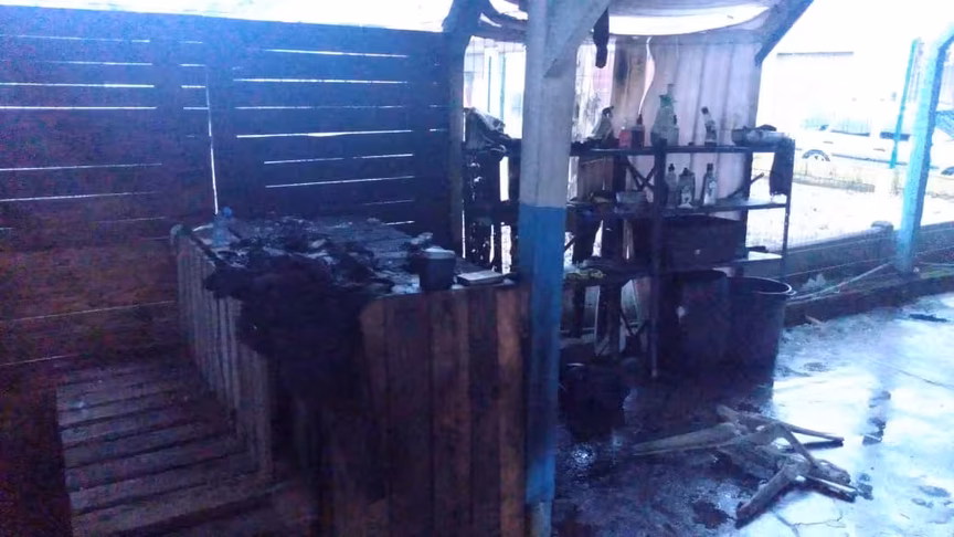 A explosão também deixou danos materiais, tendo atingido uma mesa, telhas, caibros, prateleiras, que guardava diversos materiais, e também uma cadeira de plástico, que ficou totalmente derretida.