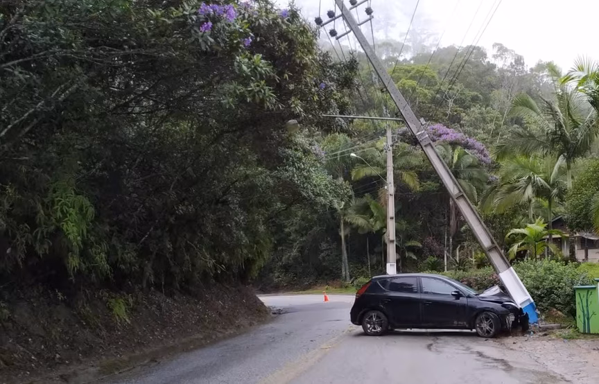 Um motociclista de 32 anos ficou ferido após ser atingido por um carro no bairro São Pedro, em Brusque. Além de atingir a vítima, motorista do automóvel também bateu contra um poste. Acidente aconteceu na madrugada deste domingo.