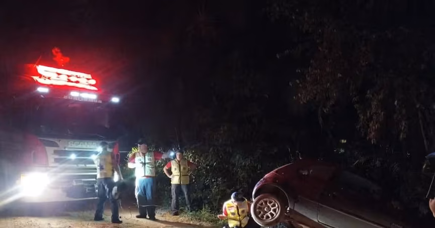 Carro cai em ribanceira e fica preso em cerca no Rio Branco, em Brusque